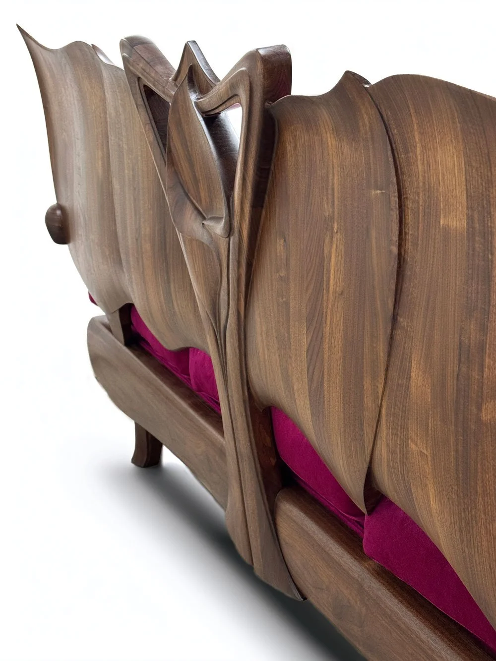 This sofa embodies the timeless principles of Art Nouveau through a contemporary lens, seamlessly merging the movement's reverence for natural forms with modern luxury. Drawing inspiration from botanical curves and the graceful lines of the human figure, the design transforms functional seating into sculptural art. Every contour flows with organic intention, creating sensuous forms that celebrate both beauty and design.